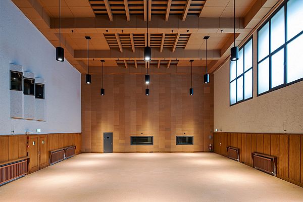 Im Studio 1 konnte avidec ihre Expertise umfassend einbringen. Eine hochwertige Beschallungsanlage mit moderner Mikrofontechnik sorgt für eine klare und gleichmässige Klangverteilung, ideal für Bühnendarbietungen, Proben und Veranstaltungen. Ein besonderes architektonisches und funktionales Highlight ist die vollständig heb- und senkbare Bühne, welche den multifunktionalen Charakter des Raumes unterstreicht und unterschiedlichste Nutzungsszenarien ermöglicht.