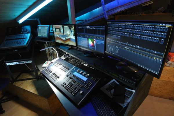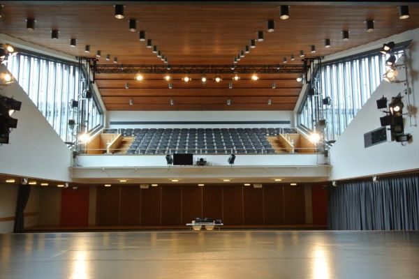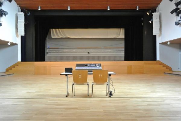 Für eine hochwertige und homogene Beschallung der Publikumsflächen wurde auf ein leistungsstarkes Line Array System zurückgegriffen. Für Bereiche, die nicht direkt durch die Frontbeschallung abgedeckt werden konnten, wurden mehrere Zusatzflächen definiert. Diese erhielten eine eigene, auf die Situation optimierte, laufzeitkompensierte Beschallungslösung. Zwei netzwerkbasierte Regieplätze, einer davon portabel, gehören ebenfalls zur neuen Beschallungslösung. Für Videopräsentationen wurde ein leistungsstarker Full-HD-Projektor montiert und bestehende, im Bühnenbereich installierte Kameras, gegen neue ausgetauscht. Die bereits bestehende Touchpanel basierte Steuerung wurde aktualisiert und angepasst. Die neu installierten Komponenten, in Verbindung mit der einfach gehaltenen Steuerung, ermöglichen es allen Nutzern schnell und einfach professionelle Resultate zu erzielen.