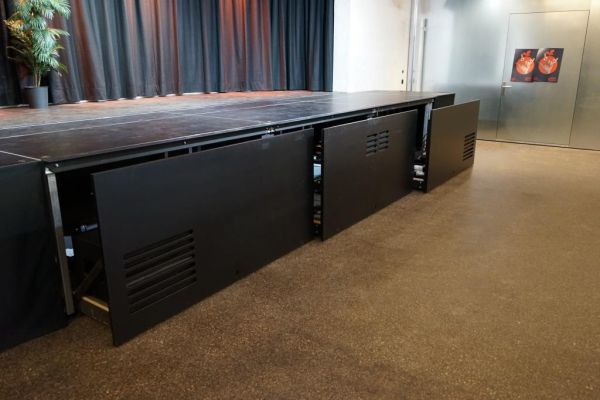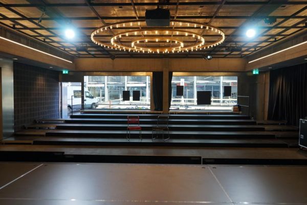 Für den rund 155m2 grossen Raum plante avidec eine klassische links/rechts Beschallung. Die leistungsstarke und für alle Anforderungen adäquate Beschallungslösung ergänzte avidec mit in Bühnenwagen integrierten Subwoofern und einem Frontfill. Für die hinteren Sitzreihen wurde zusätzlich eine Delayline ergänzt. Am FoH-Platz kann eine ebenfalls mitgelieferte, portable Regie mit einem Digitalmischpult eingesetzt werden. Alle Audiokomponenten sind ins Netzwerk eingebunden und können so an beliebigen Stellen im Saal oder auf der Bühne verbunden werden. Ergänzt wird die Beschallungsanlage mit mehreren Funkstrecken und Mithörmikrofonen im Bühnenbereich. Für visuelle Einspieler steht mit einem 12000-ANSI-Lumen-Projektor eine lichtstarke und tageslichtfähige Präsentationsmöglichkeit zur Verfügung. Das ganze System ist mit einer offenen und erweiterungsfähigen Konzeption zukunftssicher ausgelegt.